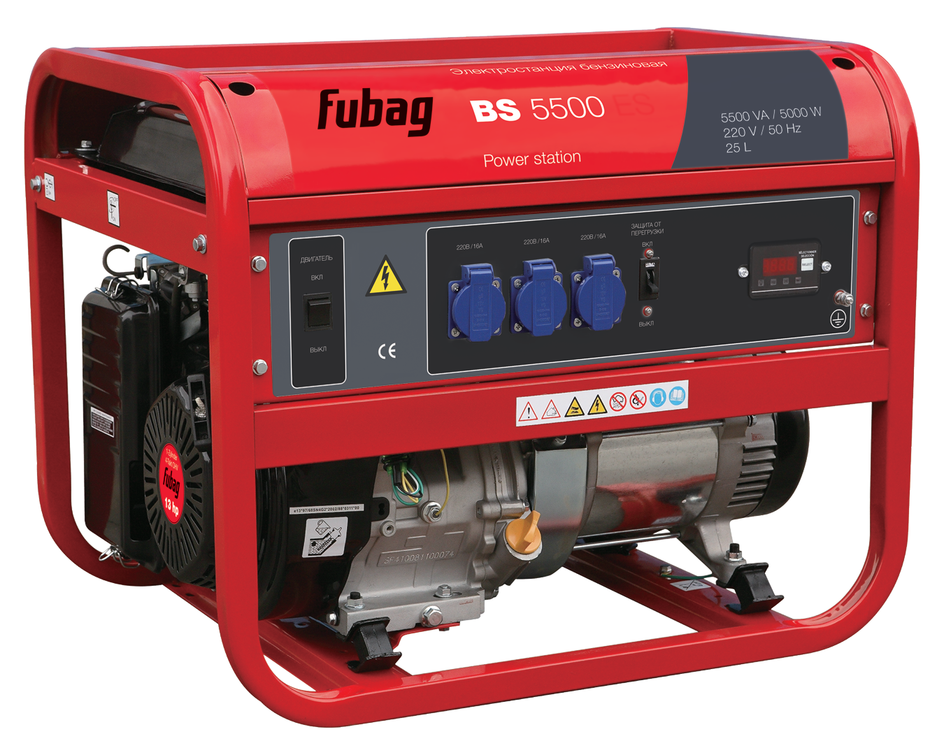Оборудована мощным и экономичным профессиональным OHV-двигателем FUBAG. Номинальная электрическая мощность составляет 5 кВт, этого достаточно для работы бытовых электроприборов, включая насосы систем отопления и водоснабжения, электроинструмента и садовой техники.