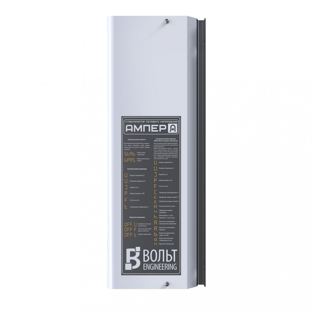 Стабилизатор напряжения Вольт Engineering Ампер Э 9-1/25 предназначен для поддержания стабильного напряжения 220В и защиты от скачков, просадок и помех на линии электропитания.